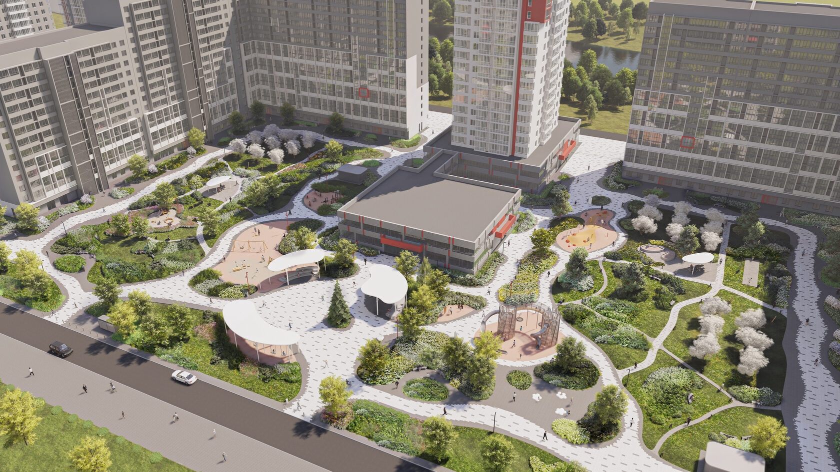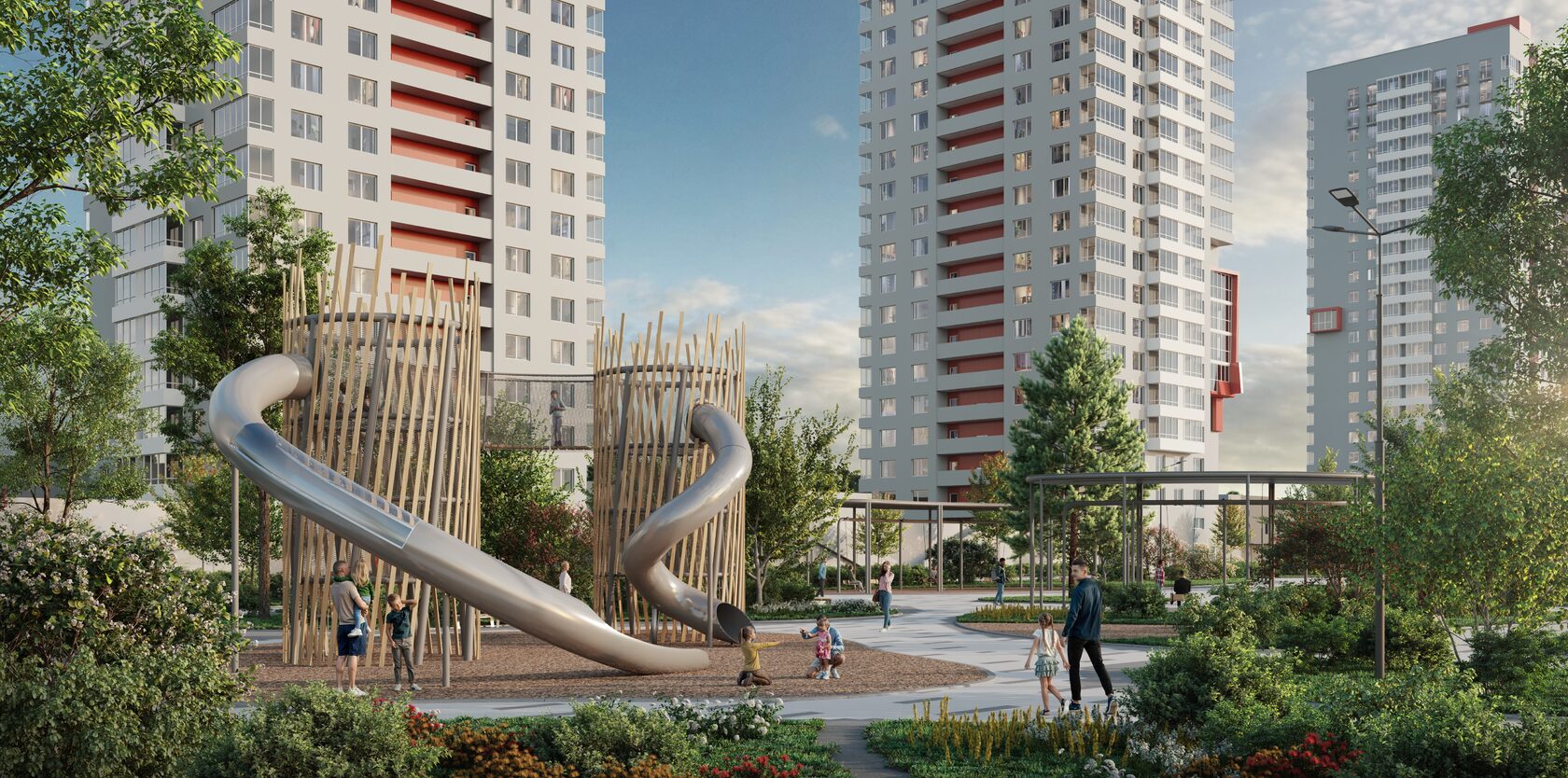 Окружите себя эстетикой. Многоуровневое озеленение превращает пространство в полноценный сад, заполненный травами, злаками, многолетниками, кустарниками и крупномерными деревьями.