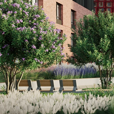 Для активных подростков предусмотрено отдельное пространство. Взрослые смогут отдохнуть в тени перголы, а приверженцы здорового образа жизни будут рады спортивной площадке.
