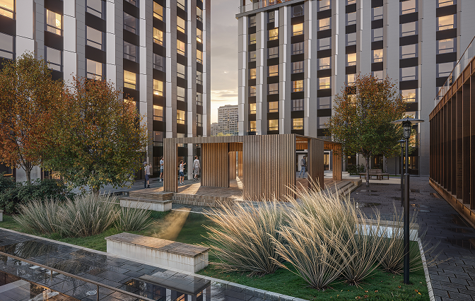 Важным элементом «Геометрии счастья» станет уютный двор с очень удачным зонированием.