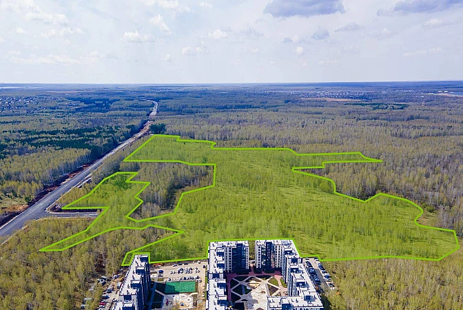 Незастроенный земельный участок окружен землями лесного фонда, с восточной стороны примыкают частные ЗУ. Окружение представлено жилой застройкой и лесным массивом. Удобное транспортное сообщение обеспечивается близостью автомобильной дороги регионального значения - Новоградский тракт.